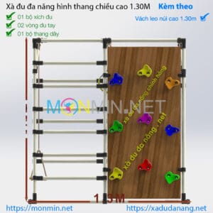 Bộ sản phẩm gồm: 2 Vòng đu tay, Ghế đu gỗ, Thang dây, Vách leo núi cao 1m3 + Tài liệu hướng dẫn tháo lắp và dụng cụ tháo lắp kèm theo